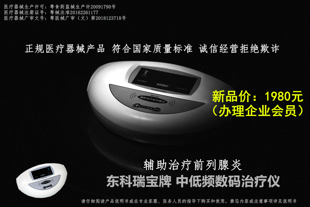 現(xiàn)在了解慢性前列腺炎的問題那么前列腺炎有什么辦法治療呢,往下看,今天給大家介紹一個(gè)東科瑞寶前列腺專用儀器,這個(gè)產(chǎn)品是采用多級(jí)性中低頻復(fù)合脈沖電流,根據(jù)前列腺疾病治療的特性,由專門設(shè)計(jì)的電腦程序控制中頻脈沖電流3000Hz-至低頻脈沖電流370Hz之間不斷變頻轉(zhuǎn)換,利用專用理療電極片等配件耗材輸出,并通過特定穴位經(jīng)絡(luò)釋放,起到輔助治療前列腺炎等疾病的作用。
